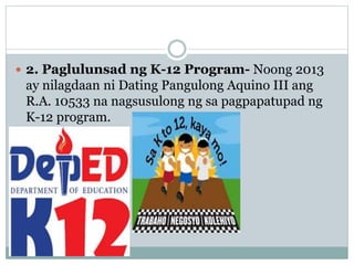 Ang HINDI yugto sa maliliit na bata ay napaka-normal at kinakailangan din upang mapag-isahin ang kanilang pagkakakilanlan at pagkatao. Bukod sa mga bata binibigyan din ng pansin ng pamahalaan ang matatanda. CY B E R Pagsasakatuparan ng Edukasyon para sa Lahat Ang Philippine Education Plan ay nilikha upang mapabuti ang sistema ng ating edukasyon.