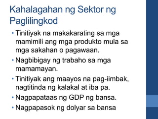 Ano ang kahalagahan ng pagsukat ng pambansang kita. Ano kaya ang mangyayari kung hindi manghimasok ang pamahalaan sa takbo ng ating. Kahalagahan ng sektor ng paglilingkod.
