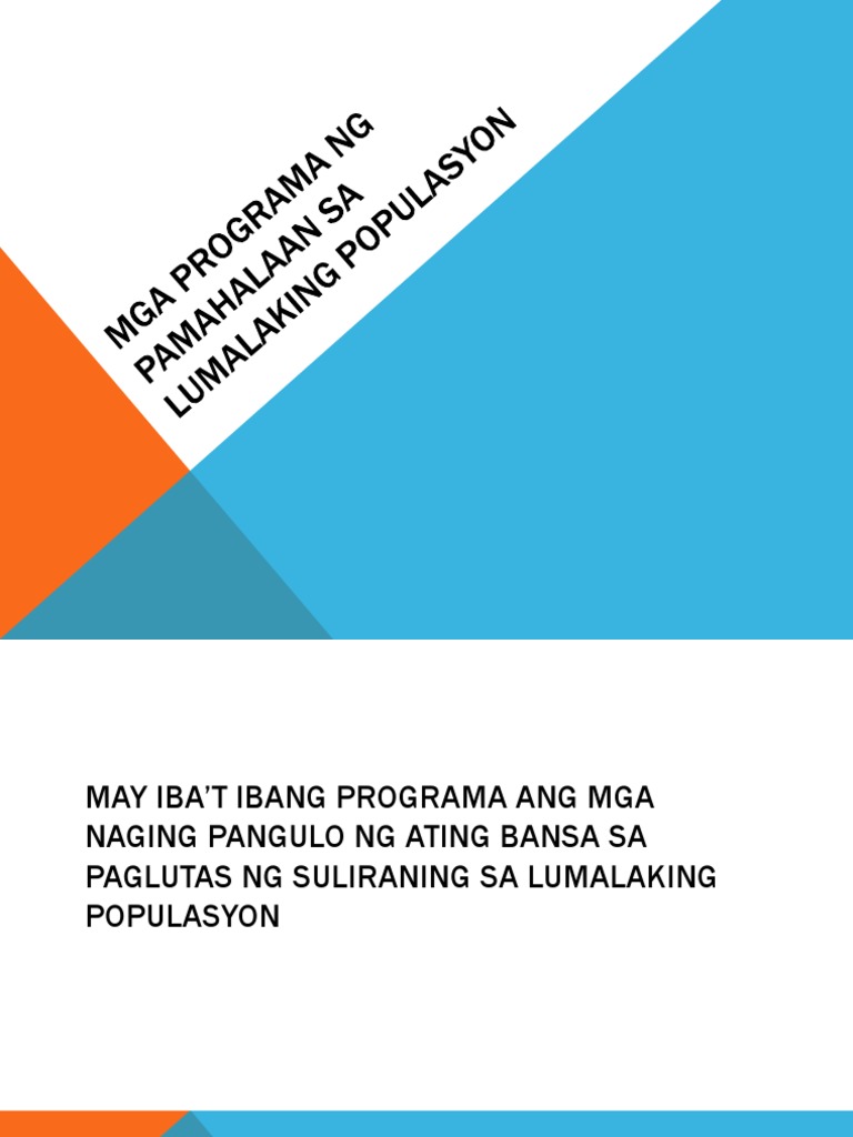 Maipaliwanag ang kahalagahan at benepisyong ibinibigay ng bawat proyekto ng pamahalaan. Pangulong corazon aquino-ibinigay sa mga mag asawa ang karapatang magpasya kung ilang anak ang nais nila. Mga ibat-ibang paglilingkod a ibinibigay ng pamahalaan sa mga n mamamayan at sa ating bayan.
