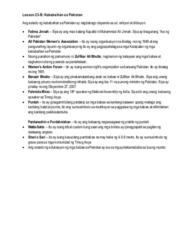 Ap 7 Lesson No 23 B Kababaihan Sa Pakistan