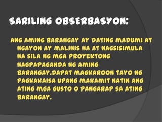 Mga problema sa ating pamahalaan at ang solusyon nito. ITO na ang solusyon sa maraming problema ng ating mga kababayan. Ang pahayag ay ginawa ni Cong. Sana mawala na ang mga adik at sana mas marami ang nagpapatrolyang pulis at tanod.