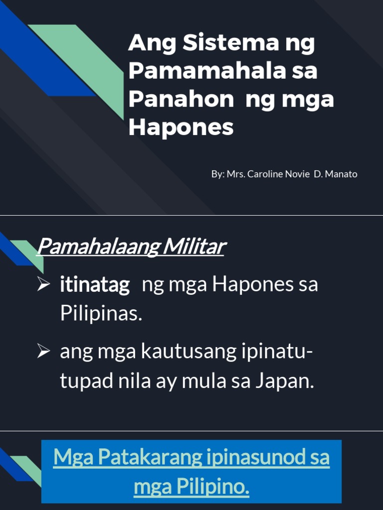 Hindi nila pinagamit ng mga radio ang. Binuwag ng mga Hapones ang lahat ng mga lapiang pulitikal. Ng Filipinas ay ang pamahalaan ng Pilipinas na itinatag kasabay ng paghahayag ng Saligang Batas ng Malolos noong Enero 23 1899 sa Malolos Bulacan hanggang sa pagdakip at pagsuko ni Emilio Aguinaldo ang.