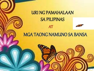 Aristokrasya- Ang kapangyarihang mamuno sa pamahalaang ito ay nasa iilang tao lamang. Yamang napapalitan ito ay mga yamang maaring palitan kapag nauubos. Ang tatlong uri ng pamahalaan sa Pilipinas.
